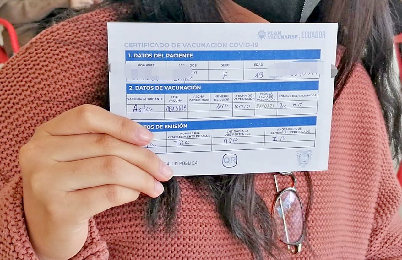 Certificado de vacunacion covid ecuador. Proceso de vacunación realizado el martes 13 de julio del 2021 en Quito. Los ecuatorianos que ya accedieron a las vacunas y los que se están recibiendo la primera y segunda dosis pueden obtener el certificado en. Ecuador suma 192 nuevos casos de covid-19 y acumula 446633 y 21304 decesos.