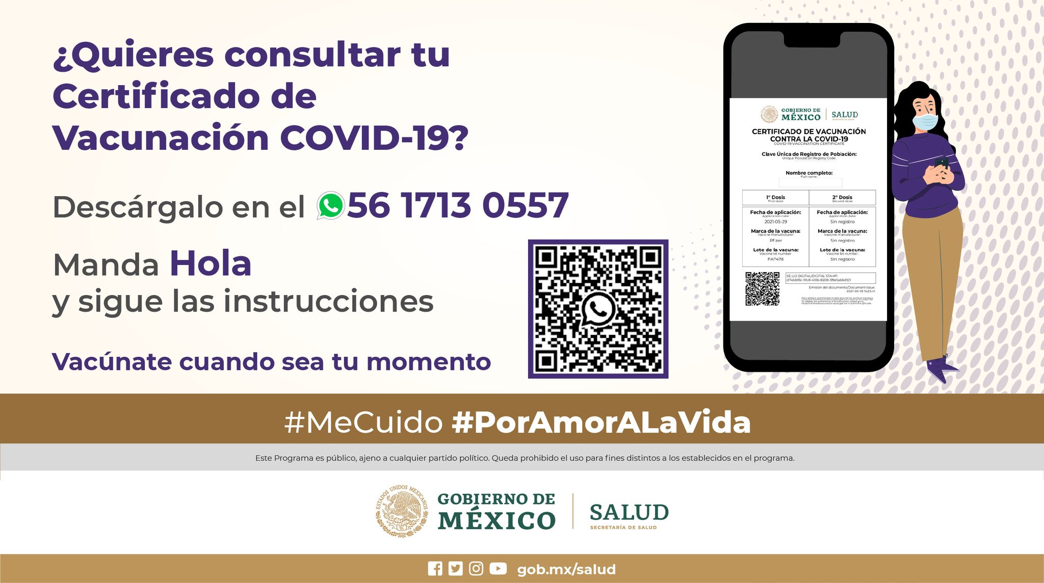 Salud Mexico On Twitter Para Obtener Tu Certificado De Vacunacion Covid 19 Escribe Hola Al Whatsapp 56 1713 0557 Y Sigue Las Instrucciones Vacunate Cuando Sea Tu Momento Y Manten Las Medidas